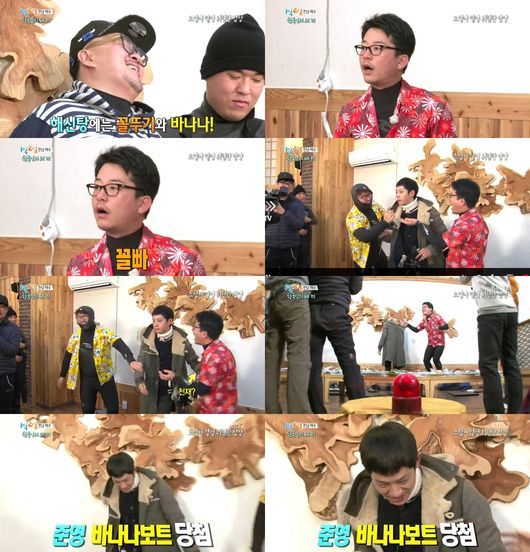 다시 들어온 김준호는 데프콘이 자리를 비운사이 몰래 바나나는 음식 여기저기에 발라 그가 바나나를 먹게끔 만들었다. 데프콘은 억울하게 방에서 나갔고, 해녀복을 입고 다시 들어와 정준영을 붙잡았다. 강제로 그에게 바나나를 먹이려던 것. 그와 협력한 김준호는 정준영의 입에 바나나를 넣는데 성공해 세사람은 바나나보트를 타게 됐다.
