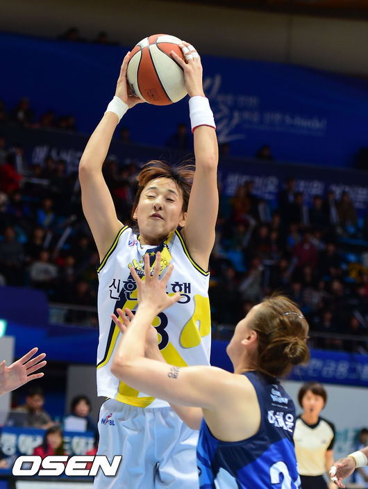 11일 오후 인천 도원체육관에서 열린 'KB국민은행 2014-2015 여자프로농구' 인천 신한은행과 용인 삼성의 경기 1쿼터, 신한은행 김단비가 리바운드를 잡아내고 있다.