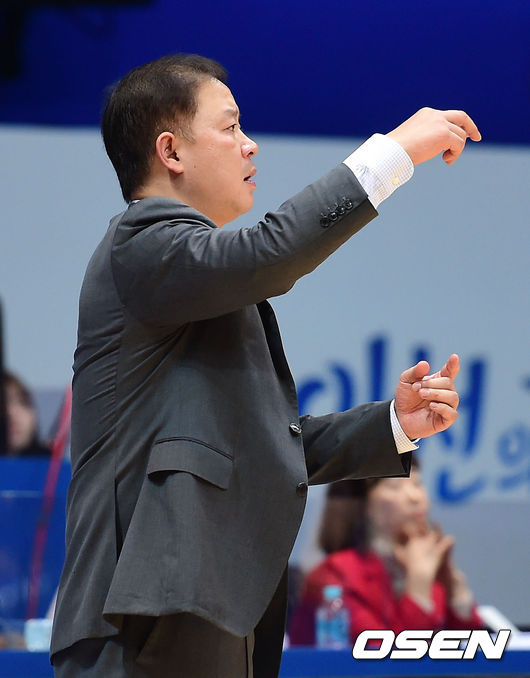 11일 오후 인천 도원체육관에서 열린 'KB국민은행 2014-2015 여자프로농구' 인천 신한은행과 용인 삼성의 경기 2쿼터, 겨기를 지켜보던 신한은행 정인교 감독이 선수들에게 작전을 지시하고 있다.