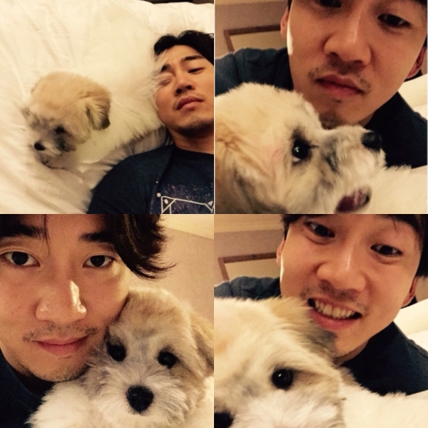 배우 윤계상이 강아지와 즐거운 한 때를 보냈다.