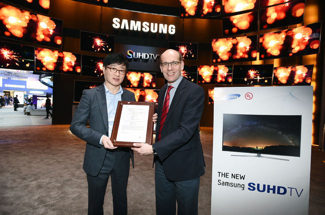 삼성전자는 미국 라스베이거스에서 열린 세계 최대 소비자가전 전시회 CES 2015 삼성전자 전시장에서 ‘UL’과 함께 현지 시간 6일 성능 인증 수여식을 갖고 인증서를 전달받았다.