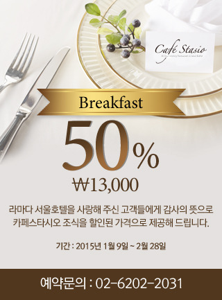 서울 강남구 삼성동에 위치한 라마다서울호텔에서는 2014년 한 해 동안 라마다서울호텔을 사랑해 준 이용자들에 대한 감사의 의미로 고객감사 조식 할인 패키지를 내놓았다.