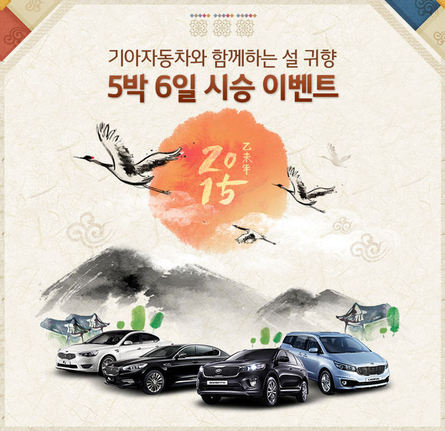 기아자동차가 설 연휴를 맞아 총 54대의 귀향 차량을 무상 대여해주는 5박 6일 시승 이벤트를 실시한다.