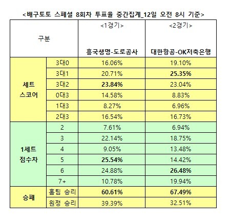2014-2015시즌 V리그 대상 배구토토 스페셜 8회차 중간집계 결과