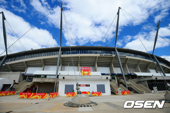 12일 오후(이하 한국시간) 호주 캔버라 스타디움에서 열린 한국 축구대표팀 기자회견이 진행될 예정인 가운데 캔버라 스타디움의 하늘이 파랗다