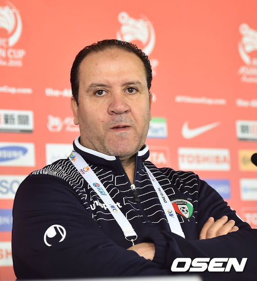 12일 오후(이하 한국시간) 호주 캔버라 스타디움에서 열린 쿠웨이트 축구대표팀 기자회견에서 나빌 말룰 쿠웨이트 감독이 생각에 잠겨있다.