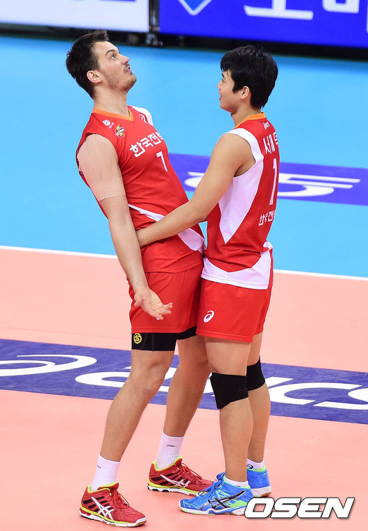 한국전력이 12일 구미 박정희체육관에서 열린 2014-2015시즌 NH농협 V리그 남자부 4라운드 LIG손해보험과 경기서 세트스코어 3-1(19-25, 25-20, 25-19, 25-22) 승리를 거뒀다. 이날 승리로 한국전력은 2연패를 탈출하며 11승 10패(승점 31)로 승수에서 현대캐피탈(9승 12패, 승점 31)에 앞선 4위로 올라섰다. 반면 LIG손해보험은 7승 15패(승점 20)에 머물렀다. / baik@osen.co.kr
