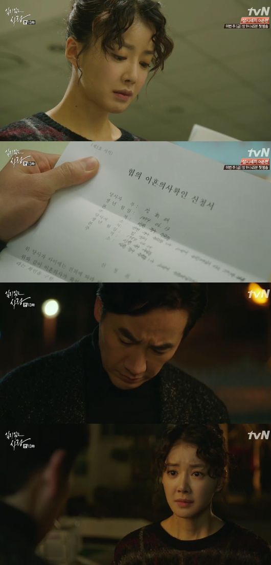 12일 방송된 tvN '일리있는 사랑'에서는 이혼 서류를 받아든 일리(이시영)의 모습이 그려졌다. 일리는 희태(엄태웅)가 떨어뜨린 서류를 발견하고 펼쳐본다. 이혼서류임을 안 일리는 희태 집을 찾아간다. 아무도 없는 집안은 불이 켜져 있고, 지저분하다.