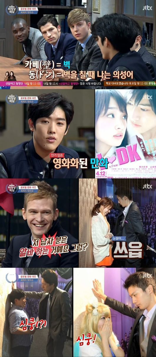 이날 타쿠야는 “일본에는 L-DK 인기에 힘입어 카베동 신드롬이 일었다. 일본어로 카베가 벽을 뜻하고, 동이 벽을 칠 때 나는 의성어를 뜻한다”고 설명했다.