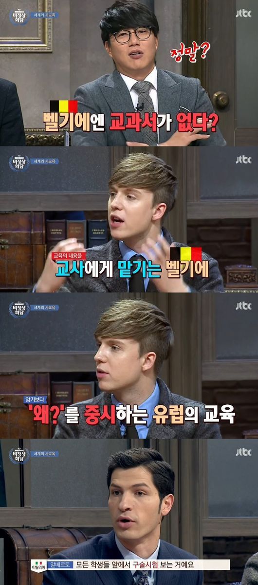 ‘비정상회담’ 줄리안이 공인 교과서가 없는 벨기에의 교욱 방식을 설명했다.