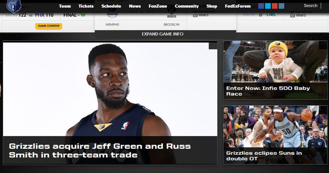 멤피스 그리즐리스 구단홈페이지 캡처.
