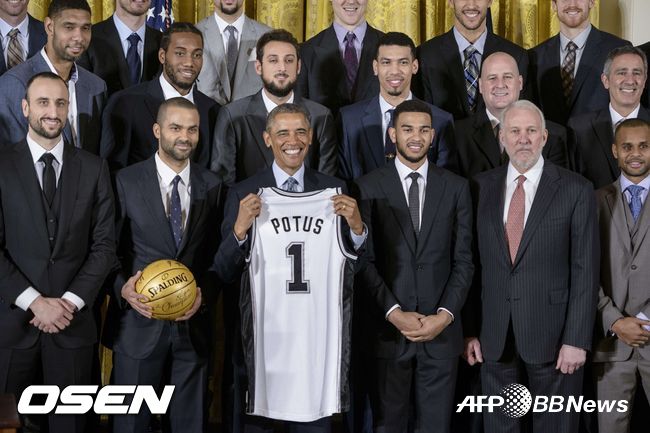 미국 대통령은 매년 미국 4대 프로스포츠와 미국대학 풋볼 및 농구 등 주요 스포츠의 챔피언을 백악관으로 초청해 만찬을 여는 전통이 있다. 2014년 NBA 파이널에서 마이애미 히트를 꺾고 우승을 차지한 샌안토니오 스퍼스 선수들이 13일(이하 한국시간) 백악관에 초청을 받았다. 그렉 포포비치 감독을 비롯해 팀 덩컨, 마누 지노빌리, 토니 파커 등 역전의 용사들이 모두 한 자리에 모였다.