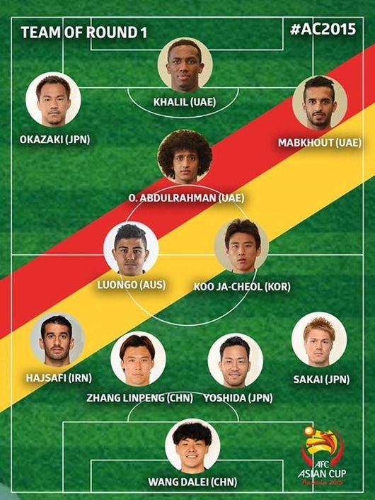 이번 베스트 11에는 일본과 아랍에미리트(UAE)가 각각 3명의 선수를 배출했고 중국이 2명을 명단에 올렸다. 일본은 오카자키 신지(마인츠) 요시다 마야(사우스햄튼) 사카이 고토쿠(슈투트가르트)가, UAE는 나란히 두 골씩 기록한 아흐메드 칼릴(알 아흘리) 알리 마브코트(알 자지라), 오마르 압둘라흐만(알 아인)이 선정됐다.