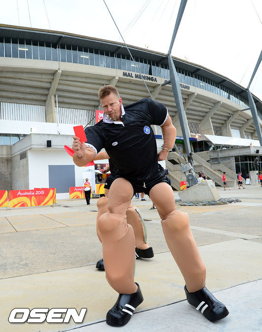 13일 오후(이하 한국시간) 호주 캔버라 스타디움에서 '2015 AFC 아시안컵 조별리그 2차전' 한국-쿠웨이트의 경기가 열릴 예정인 가운데 경기장 밖에서 광대들이 화려한 공연을 펼치고 있다.