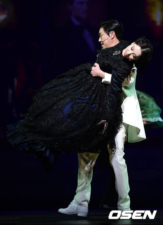 13일 오후 서울 서초동 예술의전당 오페라극장에서 열린 뮤지컬 '바람과 함께 사라지다' 프레스콜 현장에서 소녀시대 서현과 김법래가 멋진 무대를 펼치고 있다.