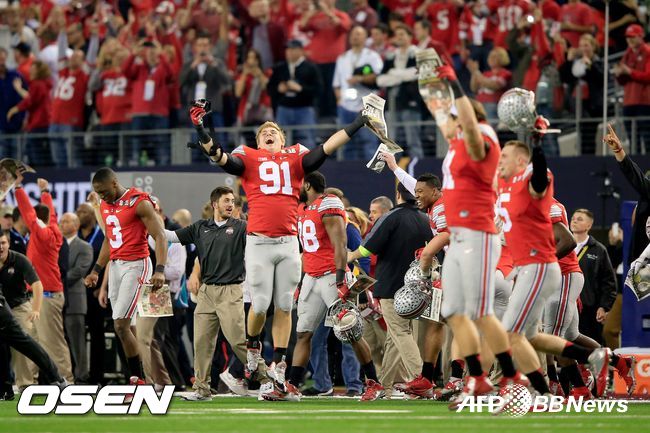 오하이오주립대 버카이스는 13일(이하 한국시간) 미국 텍사스주 알링턴 AT&T 스타디움에서 벌어진 미국대학풋볼 플레이오프 챔피언십(CFP)에서 오레건 덕스를 42-20으로 크게 물리치고 우승을 차지했다.