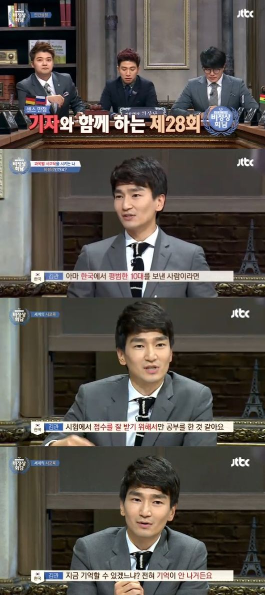 지난 12일 ‘비정상회담’이 사교육을 주제로 다룬 만큼 김관 기자가 가장 적합한 게스트였다. 김관 기자는 사회부에서 여러 번 한국의 사교육 문제를 취재해 다양한 정보를 전달하고 자신의 사교육 경험을 털어놓으며 토론을 더욱 탄탄하게 했다.
