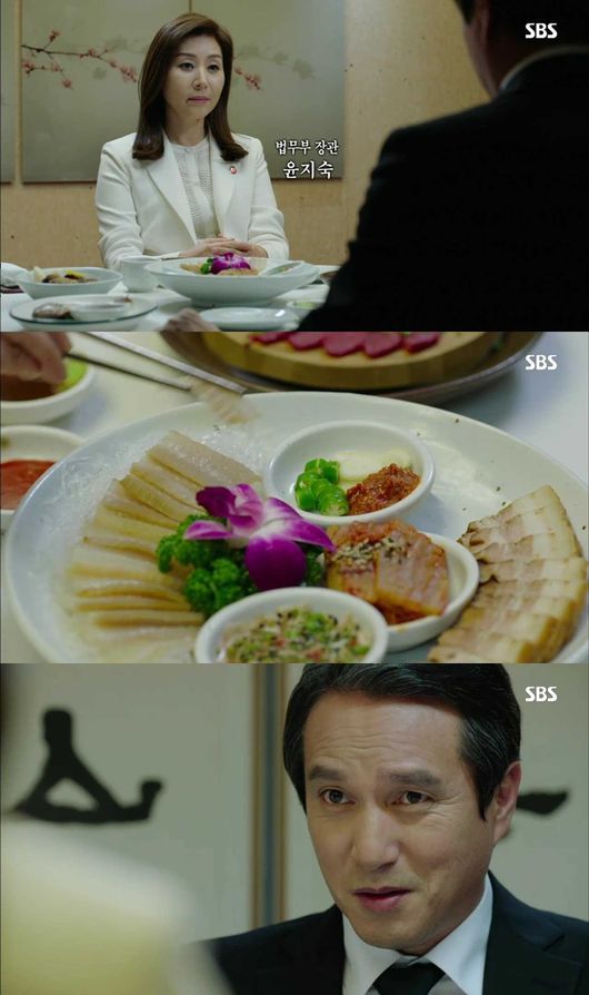 극 초반 짜장면을 먹는 장면은 이태준(조재현 분)과 박정환(김래원 분)의 단단한 신뢰감을 드러내고, 긴장감을 유발하는데 등장했다. 그리고 이번에는 윤지숙(최명길 분)과 태준의 역학 구도를 설명하는데 홍어라는 삭힌 음식을 꺼냈다.