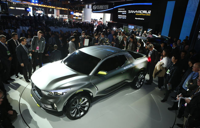 현대차가 디트로이트 모터쇼를 통해 친환경차 시장과 미국 자동차 시장의 중추, 픽업 시장에 대한 포부를 드러냈다.