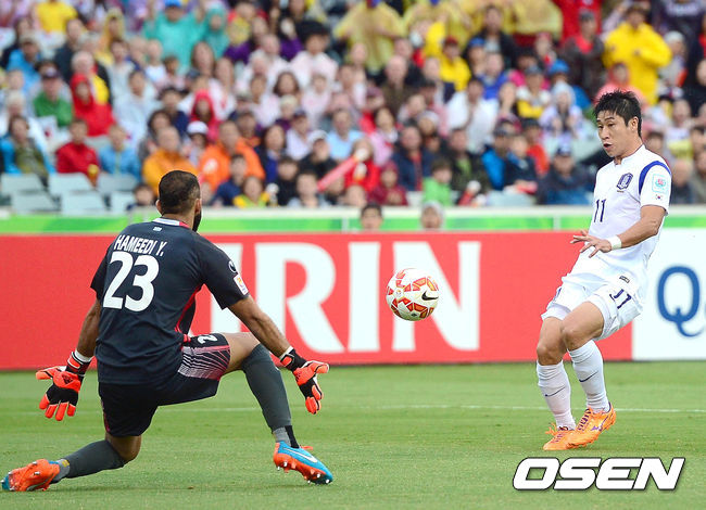 13일 오후(이하 한국시간) 호주 캔버라 스타디움에서 열린 '2015 AFC 아시안컵 조별리그 2차전' 한국-쿠웨이트의 경기,전반 이근호가 골키퍼와 1-1 대결서 골을 놓치고 있다.