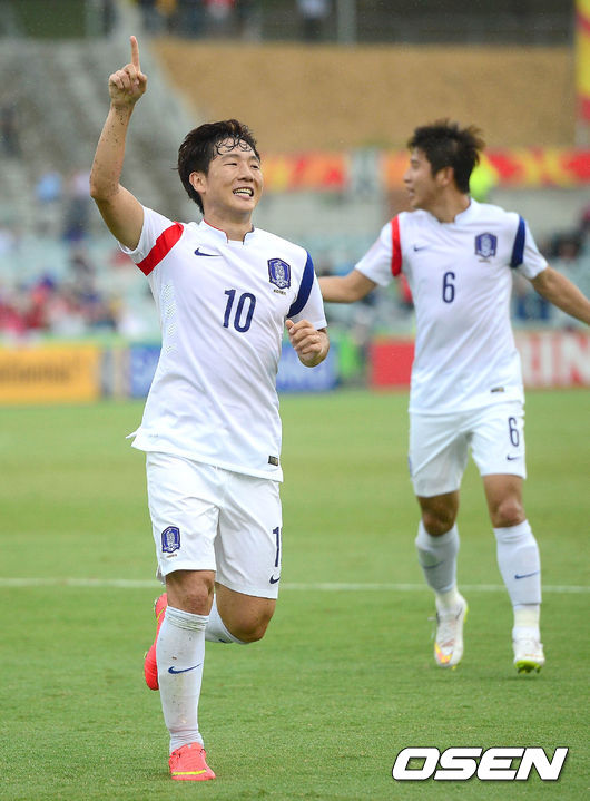 13일 오후(이하 한국시간) 호주 캔버라 스타디움에서 열린 '2015 AFC 아시안컵 조별리그 2차전' 한국-쿠웨이트의 경기,전반 남태희가 차두리의 크로스를 선제 헤딩골로 연결하고 환호하고 있다.