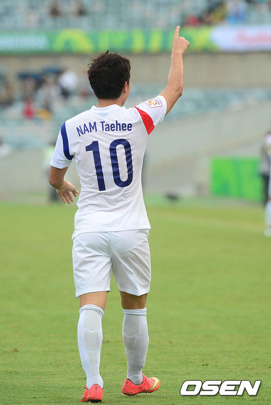13일 오후(이하 한국시간) 호주 캔버라 스타디움에서 열린 '2015 AFC 아시안컵 조별리그 2차전' 한국-쿠웨이트의 경기,전반 남태희가 선제 헤딩골을 넣고 기뻐하고 있다.
