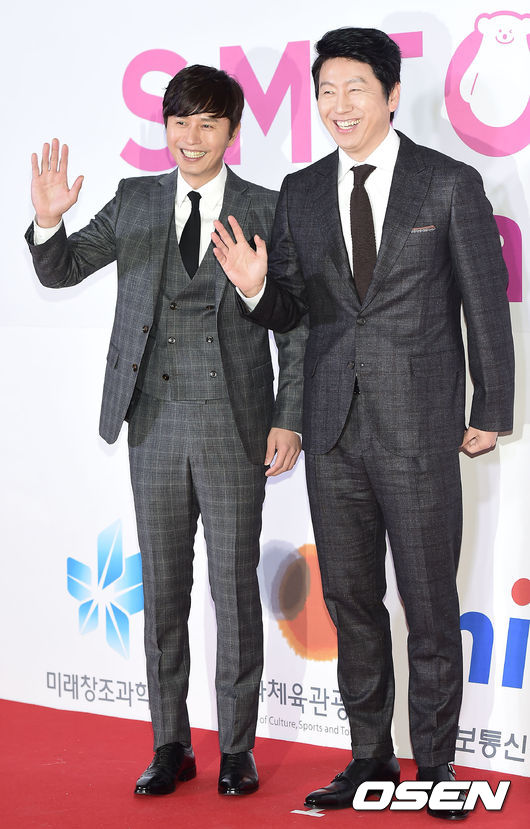 13일 서울 삼성동 코엑스에서 열린 'SMTOWN@coexartium(SMTOWN 코엑스 아티움)' 오픈식 행사에서 배우 김수로, 김민종이 포토타임을 갖고 있다.