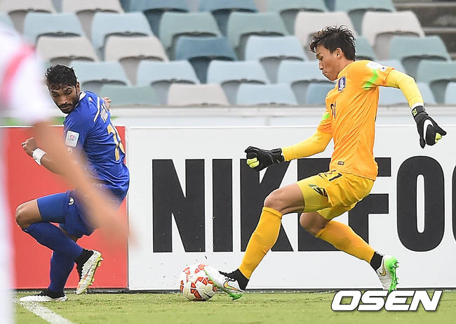 13일 오후(이하 한국시간) 호주 캔버라 스타디움에서 열린 '2015 AFC 아시안컵 조별리그 2차전' 한국-쿠웨이트의 경기,김승규가 공을 걷어내고 있다.