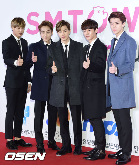 13일 서울 삼성동 코엑스에서 열린 'SMTOWN@coexartium(SMTOWN 코엑스 아티움)' 오픈식 행사에서 그룹 엑소가 포토타임을 갖고 있다.