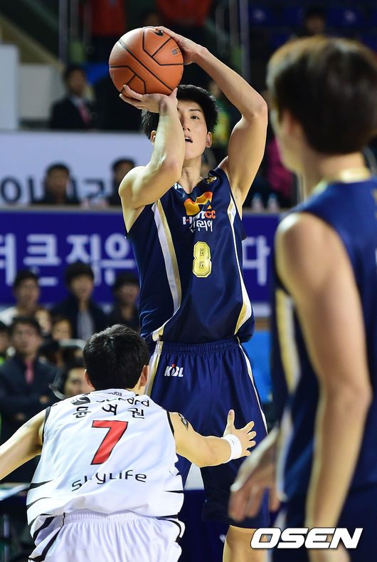 13일 오후 전주실내체육관에서 열린 '2014-2015 KCC 프로농구' 전주 KCC와 부산 KT의 경기 1쿼터 정민수가 슛을 시도하고 있다.