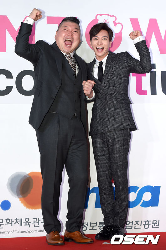개그맨 강호동과 슈퍼주니어 이특이 13일 서울 삼성동 코엑스에서 열린 'SMTOWN@coexartium(SMTOWN 코엑스 아티움)' 오픈식 행사에 참석해 포토타임을 갖고 있다.