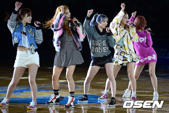 13일 오후 서울 잠실실내체육관서 열린 2014~2015 KCC 프로농구 서울 삼성과 울산 모비스의 경기, 하프타임때 배드키즈가 축하공연을 펼치고 있다.