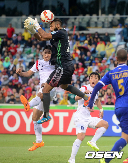 후반 쿠웨이트 골키퍼가 한국 이근호와 공중볼을 다투고 있다. / rumi@osen.co.kr