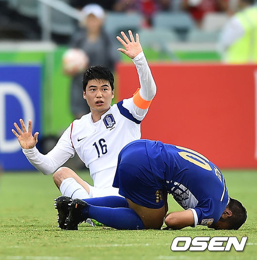 전반 한국 기성용이 파울을 범하고 주심을 바라보고 있다. / rumi@osen.co.kr