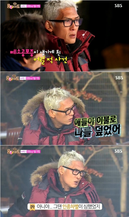 박준형은 "포비아라고 하지 않나. 이불을 이불을 덮어쓰거나 작은 공간에 들어가면 답답하다. MRI도 힘들다"고 말했다. 그는 유년시절 이야기를 꺼냈다. 그는 "10세 때 미국 학교에서 잔디밭에서 이불을 놓고 게임을 했다. 그러다 내가 이불 한가운데 놓이자 이불로 덮고 때렸다. 인종차별이 심할 때였다. 스카이다이빙 보다 어디 갇히는 게 무섭다"고 말했다.