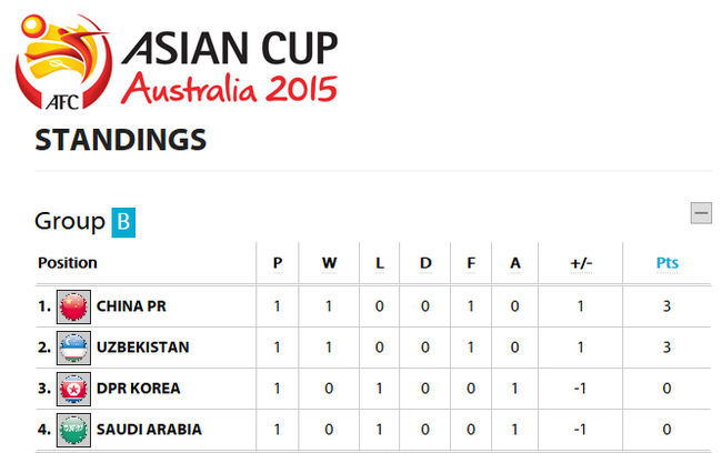 우즈베키스탄과 중국이 조 1위 8강행 티켓을 놓고 격돌한다. 지난 1차전에서 승전보를 전했던 우즈베키스탄과 중국은 14일 열리는 2015 아시아축구연맹(AFC) 아시안컵 조별리그 B조 2차전서 맞대결을 펼친다. 이 경기서 승리를 거두는 국가는 조 1위로 8강에 진출할 가능성을 크게 높이게 된다.