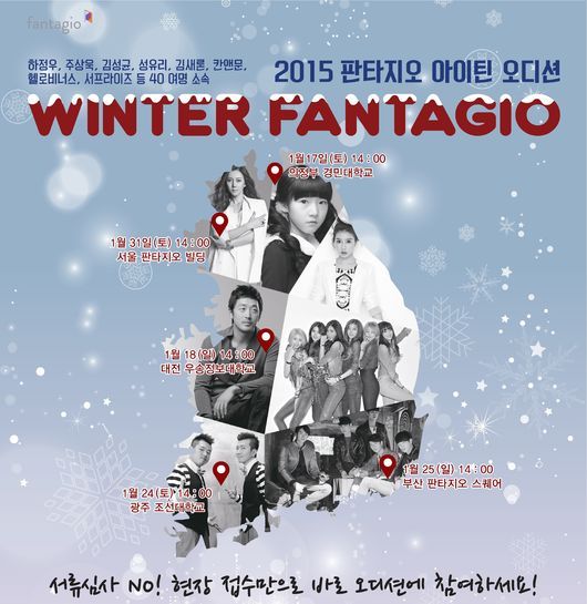 배우 하정우, 김성균, 성유리, 정경호, 김새론, 칸앤문, 헬로비너스, 서프라이즈 등 약 50여명의 스타가 소속된 판타지오에서 예비스타 발굴을 위해 2015 판타지오 아이틴 오디션‘윈터 판타지(Winter Fantasy)’를 개최한다.
