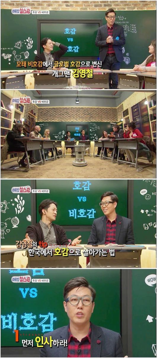 김영철은 ‘호감VS비호감’이라는 주제로 시작된 수업에서 개그맨다운 위트와 밝은 미소, 상대방의 대화를 이끌어내는 리액션들로 출연진들을 편안하게 만들며 수업을 이어갔다.