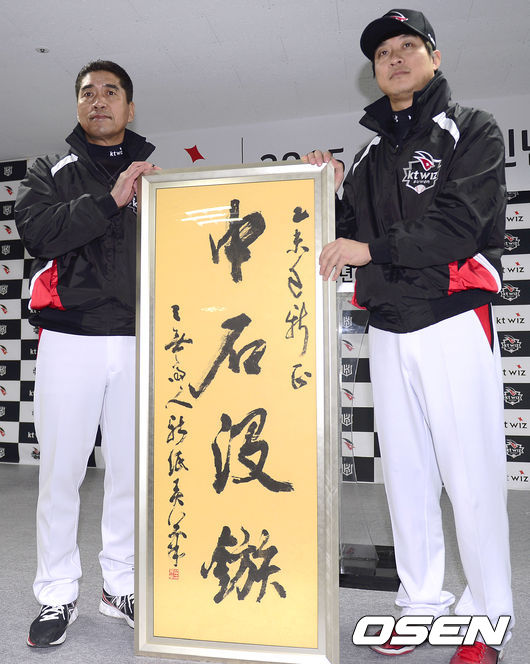 KT 조범현 감독과 신명철 주장이 포토타임을 갖고 있다.