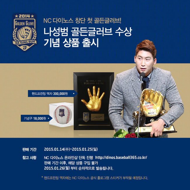 NC 다이노스가 14일 나성범의 골든글러브 수상을 기념하는 상품을 내놓았다.