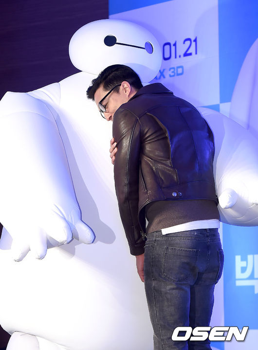 14일 오전 서울 여의도동 콘래드 서울호텔에서 열린 영화 '빅 히어로' 내한 기자회견에서 다니엘 헤니가 베이맥스와 포토타임을 갖고 있다.