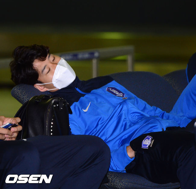 14일 오전(한국시간) 2015 AFC 호주 아시안컵대회 한국대표팀이 예선 3차전 호주와의 경기를 위해 브리즈번으로 이동했다. 브리즈번 공항에 도착한 손흥민이 의자에 기대어 쉬고 있다.