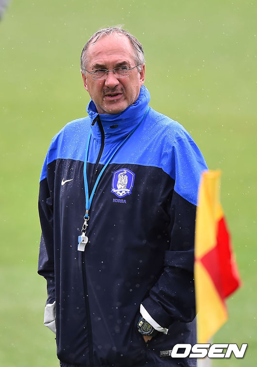 14일 오후(한국시간) 호주 브리즈번 페리 파크에서 2015 AFC 호주 아시안컵대회 한국대표팀이 예선 3차전 호주와의 경기를 위해 훈련을 가졌다. 슈틸리케 감독이 하늘을 바라보며 얘기를 하고 있다.