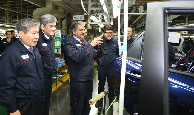 마힌드라 그룹의 아난드 마힌드라 회장(이하 마힌드라 회장)이 평택공장을 방문해 신차 ‘티볼리’ 출시를 축하하고 임직원들을 격려했다.