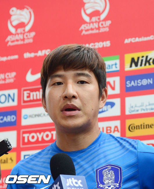 14일 오후(한국시간) 호주 브리즈번 페리 파크에서 2015 AFC 호주 아시안컵대회 한국대표팀이 예선 3차전 호주와의 경기를 위해 훈련을 가졌다. 박주호가 인터뷰를 하고 있다.