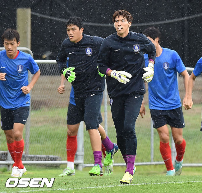 14일 오후(한국시간) 호주 브리즈번 페리 파크에서 2015 AFC 호주 아시안컵대회 한국대표팀이 예선 3차전 호주와의 경기를 위해 훈련을 가졌다. 김진현과 정성룡이 훈련을 하고 있다.