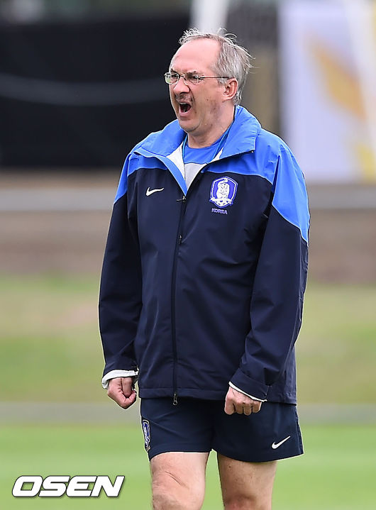 14일 오후(한국시간) 호주 브리즈번 페리 파크에서 2015 AFC 호주 아시안컵대회 한국대표팀이 예선 3차전 호주와의 경기를 위해 훈련을 가졌다. 슈틸리케 감독이 그라운드 위에서 하품을 하고 있다.