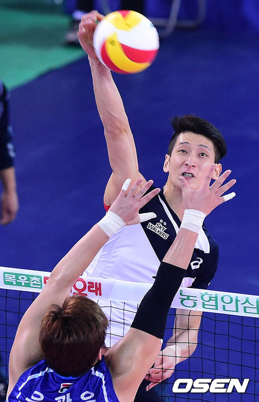 14일 오후 천안 유관순체육관에서 열린 '2014-2015 NH농협 V-리그' 현대캐피탈과 삼성화재의 경기 1세트 문성민이 공격을 시도하고 있다.