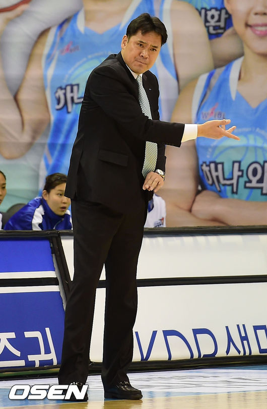 14일 오후 경기도 부천실내체육관에서 열린 'KB국민은행 2014-2015 여자프로농구' 하나외환과 삼성의 경기 3쿼터, 삼성 이호근 감독이 선수들에게 작전을 지시하고 있다.