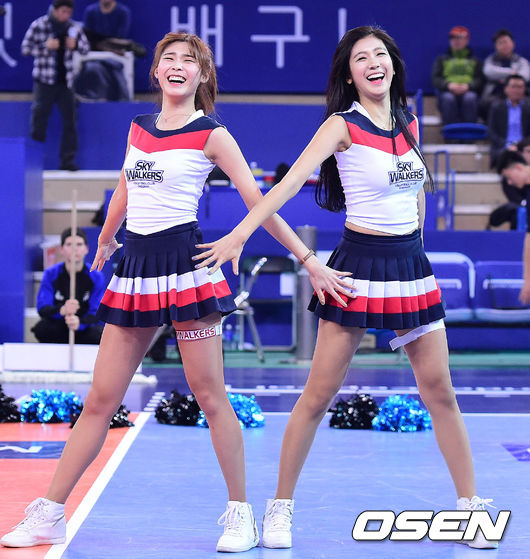 14일 오후 천안 유관순체육관에서 열린 '2014-2015 NH농협 V-리그' 현대캐피탈과 삼성화재의 경기, 치어리더 김연정이 공연을 펼치고 있다.
